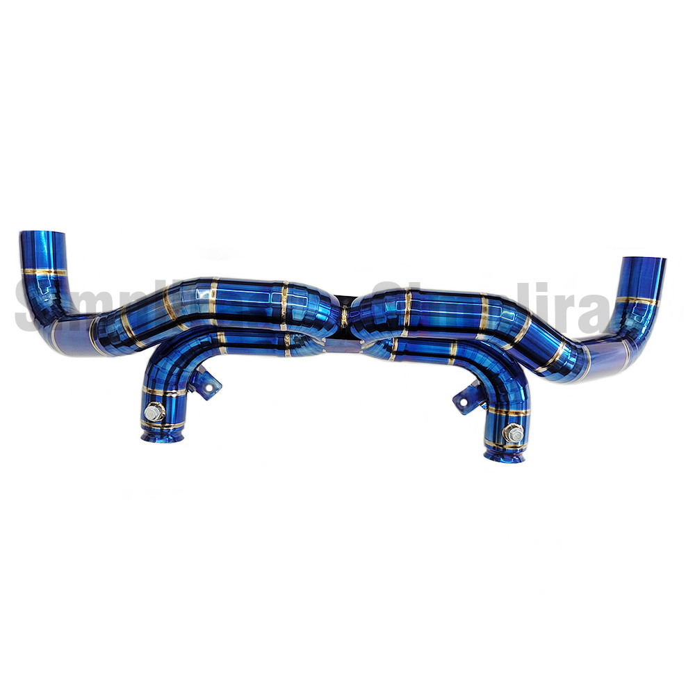 Produkt-Liste> Europäische Autos> Auspuffkatze> Titanium Lamborghini Gallardo 04-08 X-Pipe Burn Blue Auspuffsystem